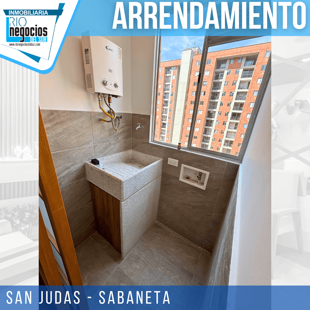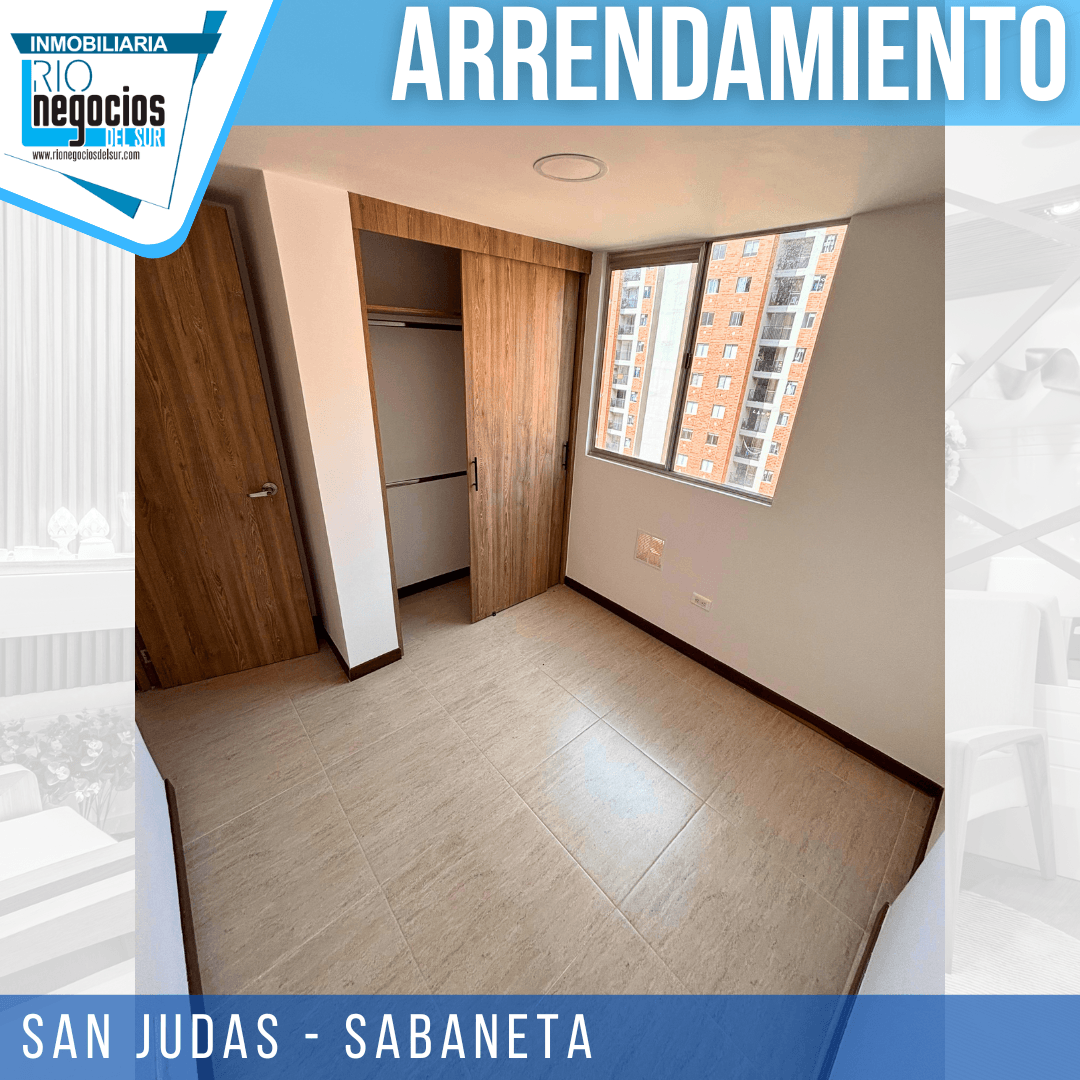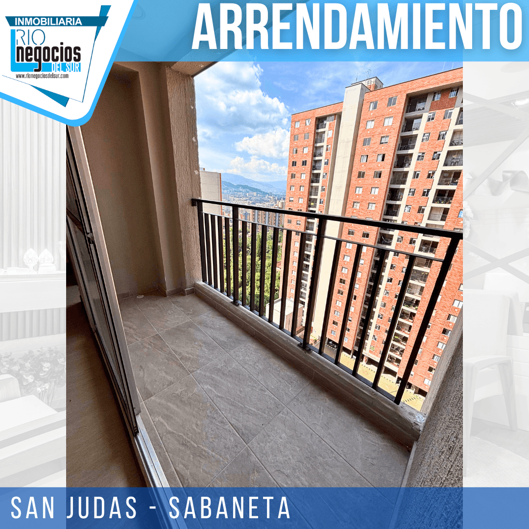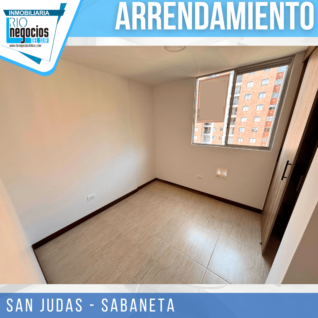 apartamento disponible para arrendar en Sabaneta. sector San Judas. Cuenta con un área de 60 mts2. 3 habitaciones con closet, principal con baño, Baño social, Sala comedor, Cocina integral, Zona de ropas, Balcón, Parqueadero y cuarto útil, Unidad con piscina, cancha multiple, salón social, parqueadero visitantes, portería y vigilancia 24 horas. piso 20