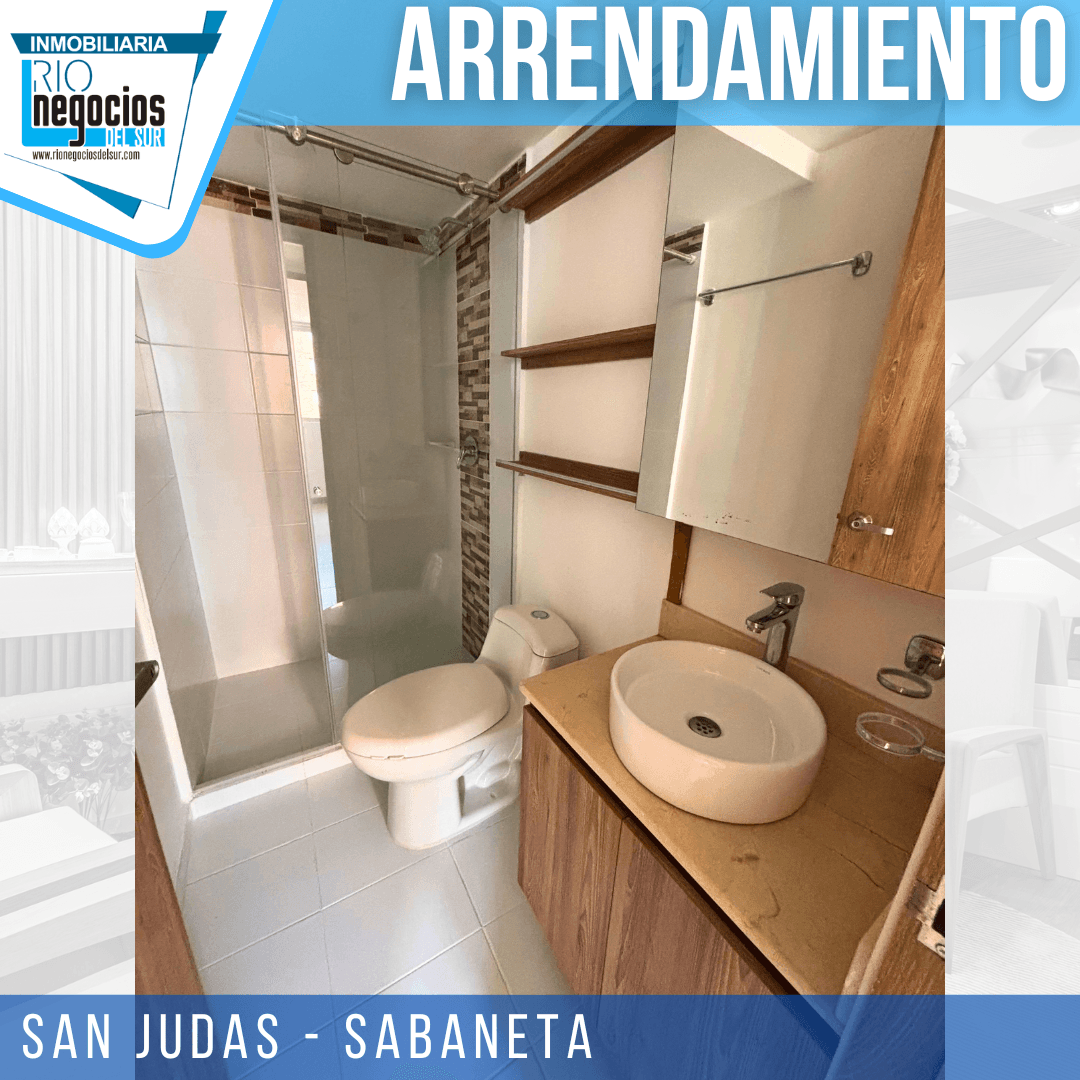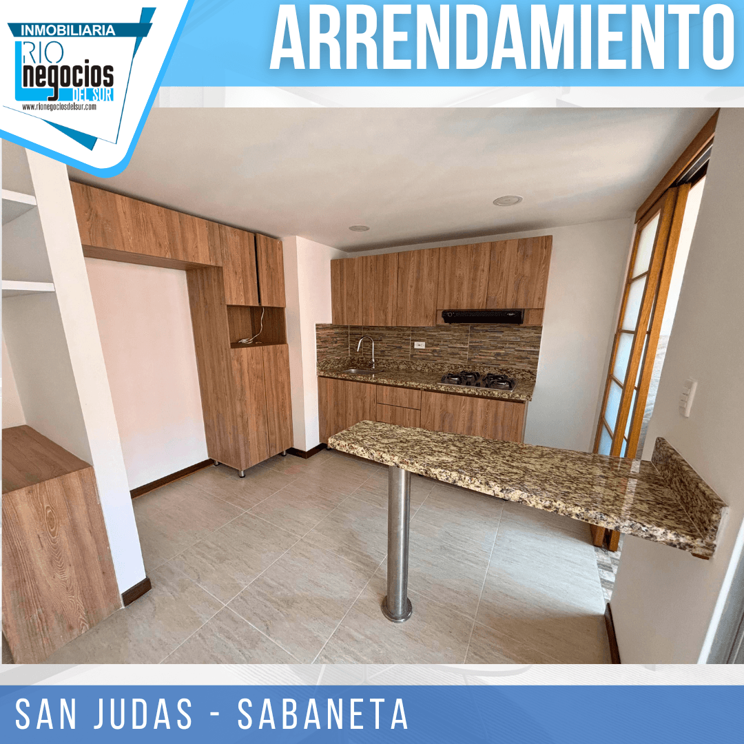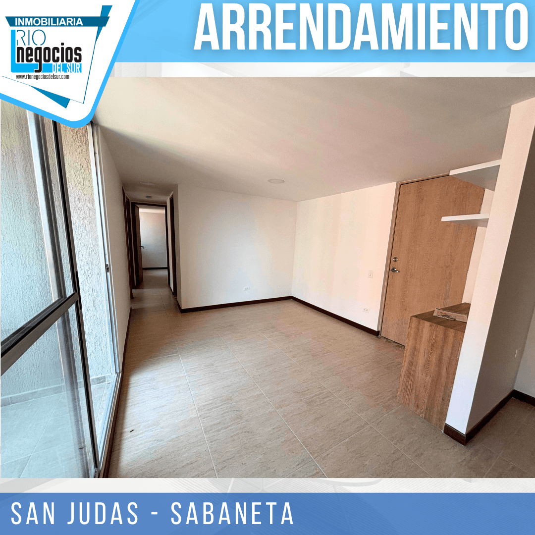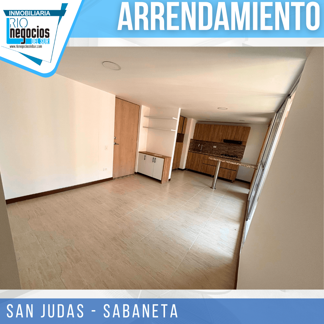 apartamento disponible para arrendar en Sabaneta. sector San Judas. Cuenta con un área de 60 mts2. 3 habitaciones con closet, principal con baño, Baño social, Sala comedor, Cocina integral, Zona de ropas, Balcón, Parqueadero y cuarto útil, Unidad con piscina, cancha multiple, salón social, parqueadero visitantes, portería y vigilancia 24 horas. piso 20