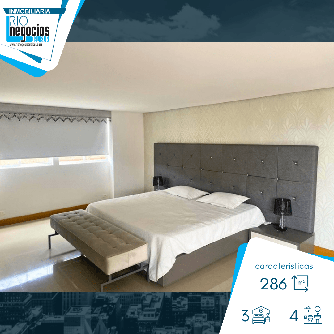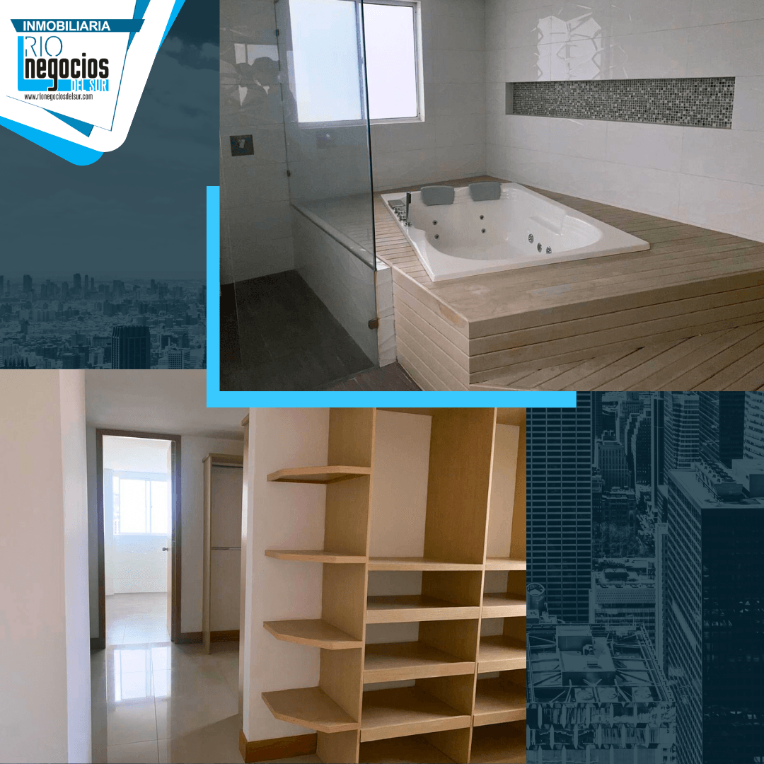 hermoso apartamento en venta en Sabaneta. Sector la vaquita (barquereña). Cuenta con un área 286mts2 . 3 habitaciones (principal con 2 vestier, baño y jacuzzi, otra con Vestier y baño, otra con Closet y baño), Cuarto de estudio, Cuarto de servicio con baño, Cocina integral con barra, Sala comedor, Zona de ropas, 6 balcones, 2 Parqueaderos y cuarto útil, Zonas comunes: piscina, salón social, gym. estrato 4, hermosa vista a la ciudad