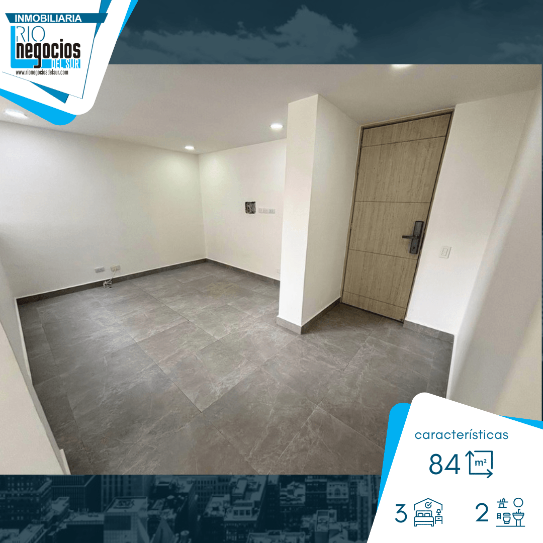 Apartamento disponible en venta en Sabaneta. sector prados de Sabaneta. Cuenta con un área de 84 mts2 . 3 habitaciones con closet, 2 baños cabinados, Closet de linos, Sala comedor, Cocina integral, Zona de ropas, Balcón, Parqueadero y cuarto útil, Zonas comunes: piscina, gym, sauna, salón social, portería y vigilancia 24 horas. piso 15, estrato 4